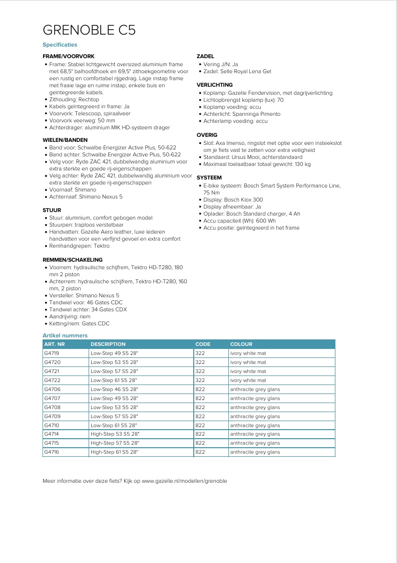 Ga erop uit. Met Grenoble C5 is elke rit comfortabel; rechtop fietsen, stille ondersteuning en een gemakkelijke instap. De extra aandacht voor integratie en afwerking benadrukt het elegante comfort.