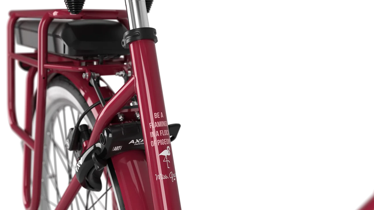 Details maken de Miss Grace helemaal af. Op de bovenbuis zie je bijvoorbeeld een frameplaat helemaal in stijl met de e-bike. Dankzij de opvallende styling is de Miss Grace een hippe verschijning. Zo arriveer je stijlvol op bestemming.