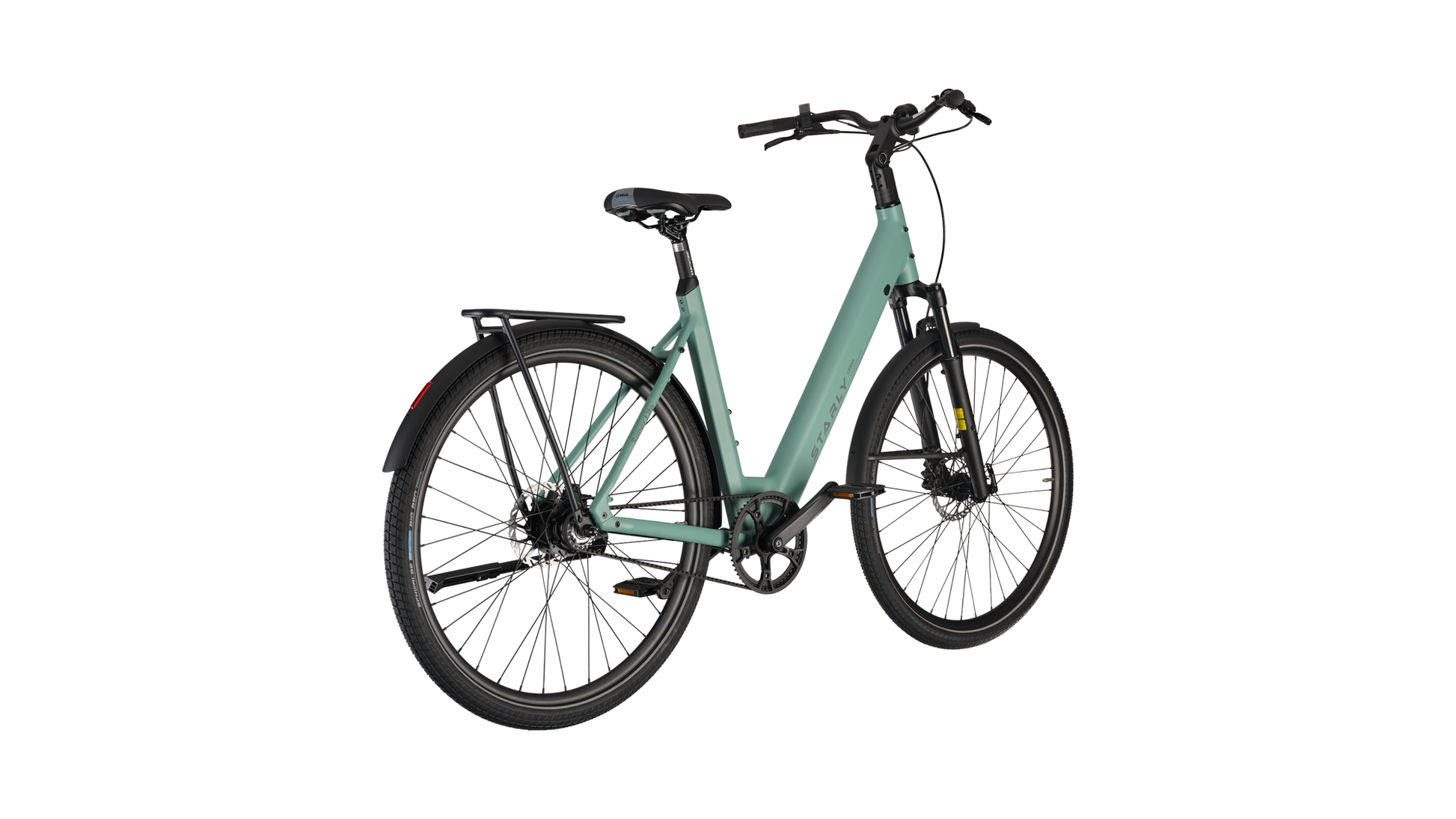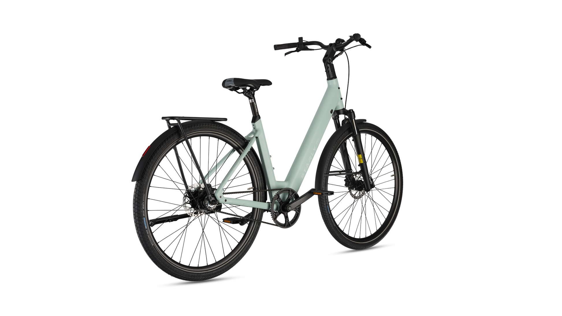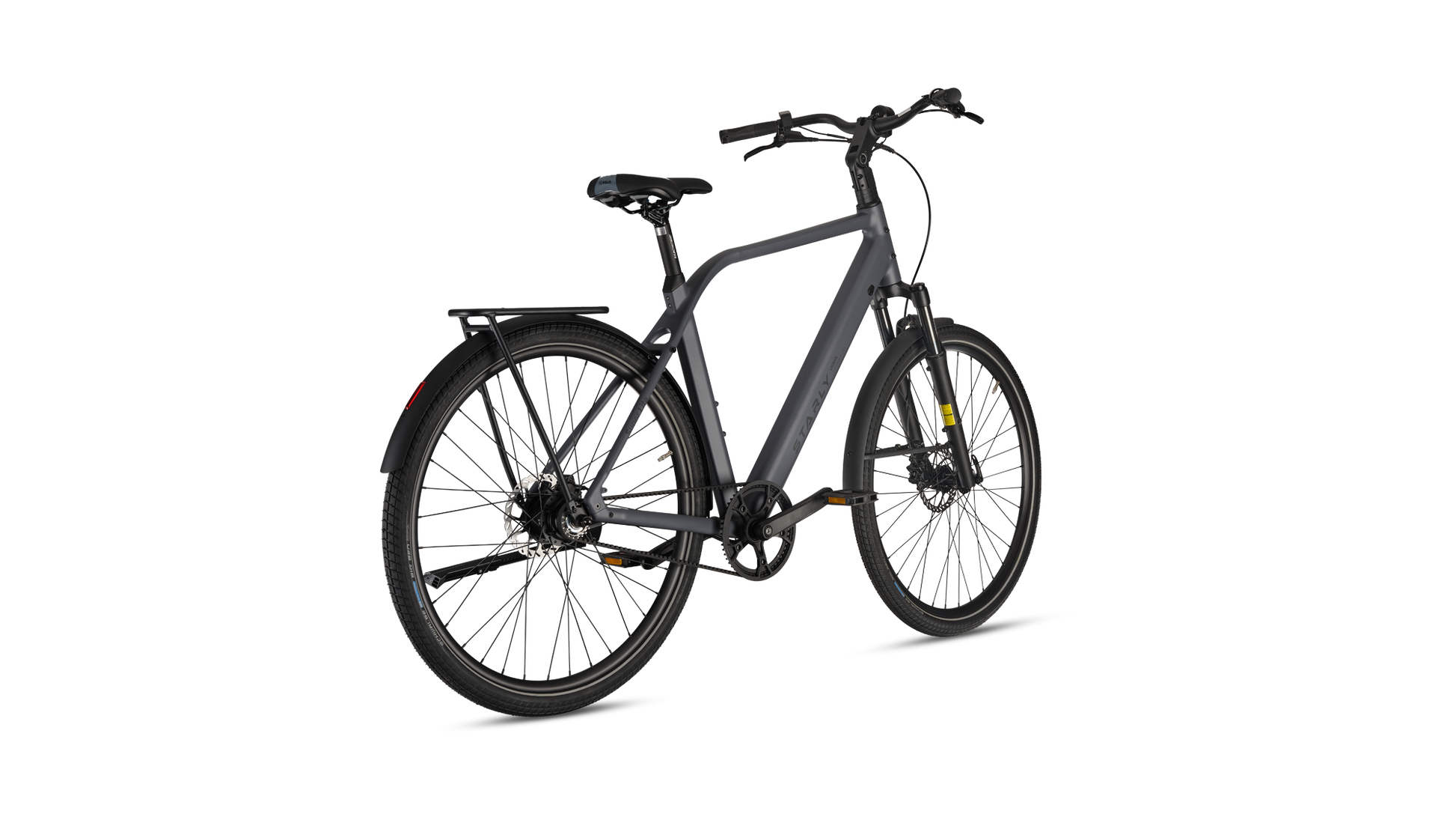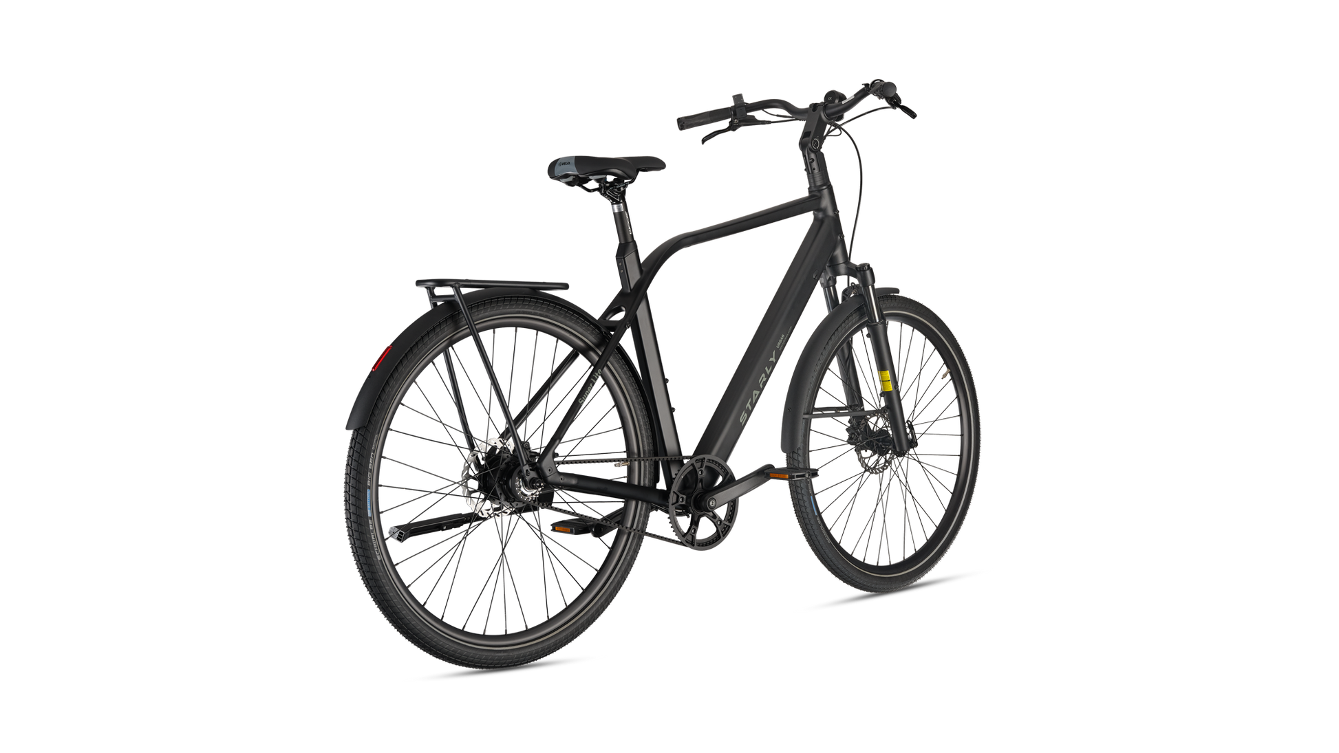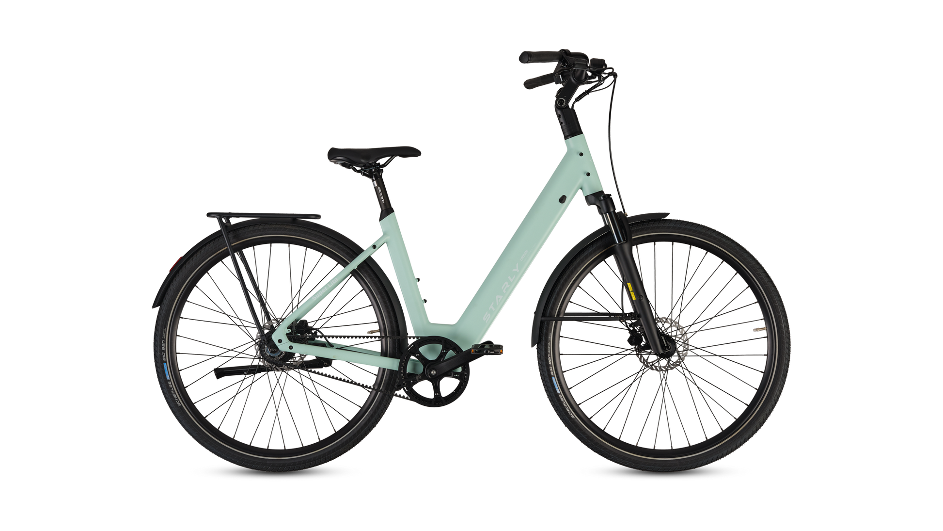 Met zijn stijlvolle design én slimme functionaliteit is deze e-bike perfect voor drukke dagen vol afspraken en snelle avonturen door de stad. Dankzij de brede, hoogwaardige Schwalbe Big Ben anti-lekbanden fiets je moeiteloos over tramrails, hobbelige wegen en zelfs zandpaden. De verende voorvork en verstelbare stuurpen zorgen voor een heerlijk comfortabele rit, elke dag opnieuw. En natuurlijk is de praktische achterdrager standaard inbegrepen – ideaal voor al je bagage onderweg. Met de Starly Bikes Super Lite wordt elke rit een feestje!